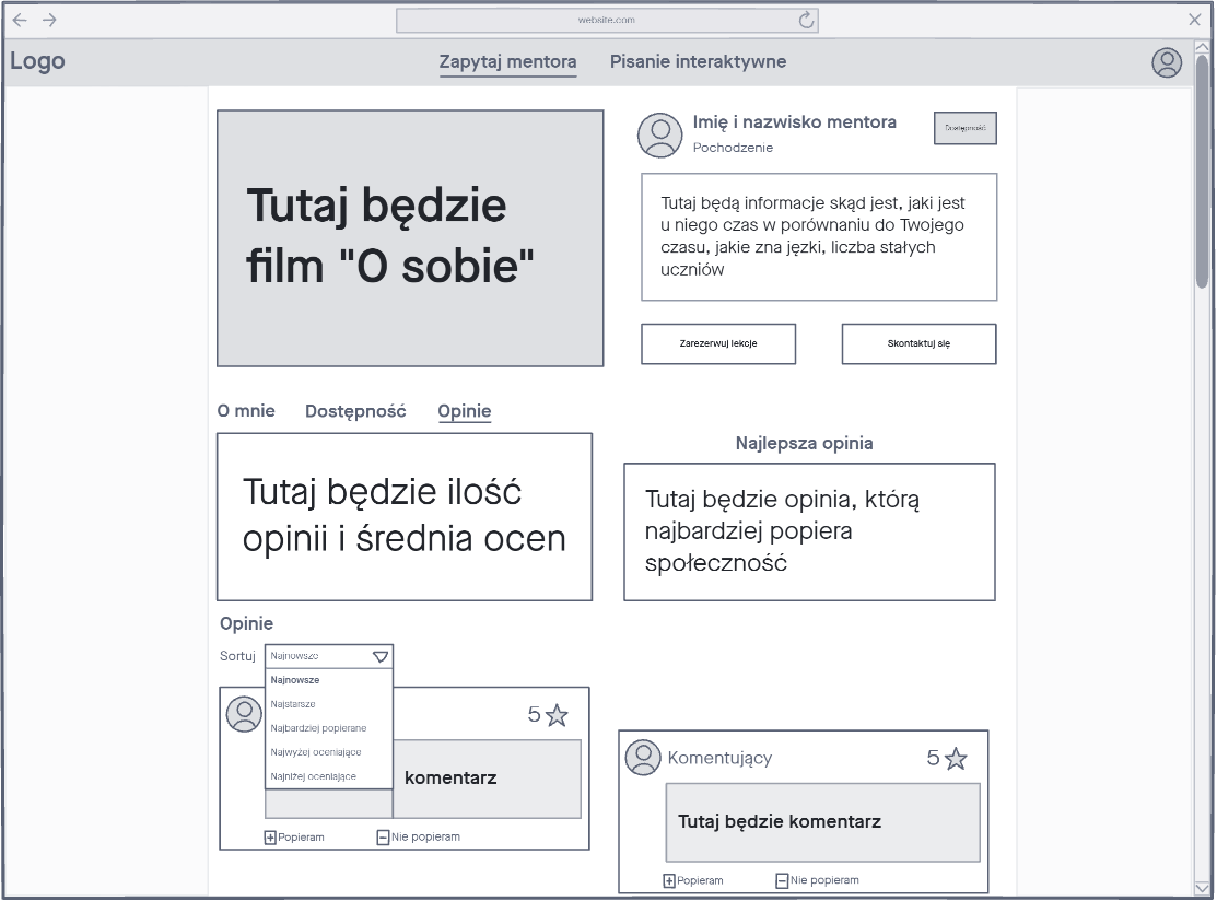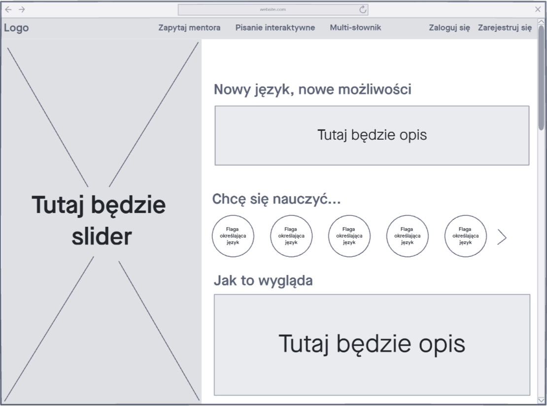 Dalej stworzyliśmy makiety o wyższym poziomie szczegółowości. Makieta posiada szczegółowo opisane elementy i rozmieszczony tekst. Również proporcje zdjęć zostały ujednolicone.