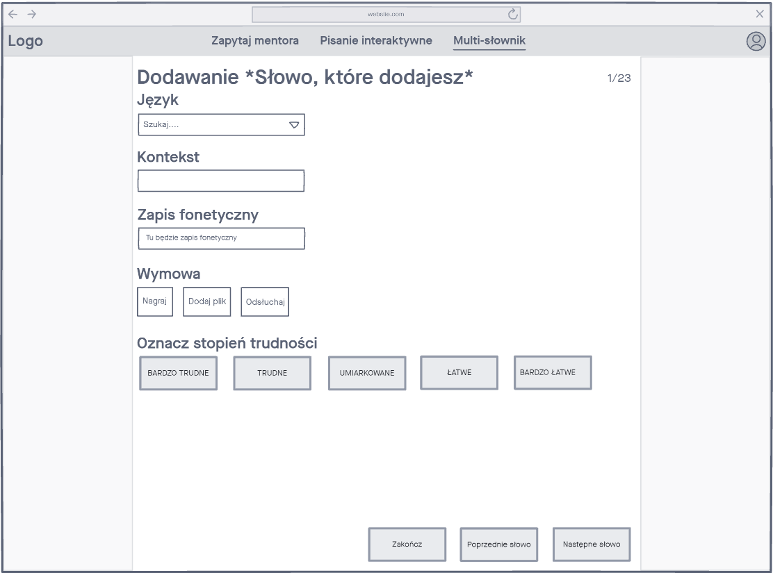 Głównymi problemami osób uczących się języka jest znalezienie metod, które pozwolą na efektywną i progresywną naukę, a także optymalizacja kosztów oraz lepsze wykorzystywanie czasu przeznaczonego na poznawanie nowego języka. Zaprojektowaliśmy platformę, gdzie oprócz praktycznej nauki z lektorem, można również nauczyć się pisać trudne znaki czy tworzyć własny słownik słówek. Projekt powstał w ramach edukacji na Akademii UXUI w dwuosobowym zespole i był to mój zarazem pierwszy projekt w życiu.